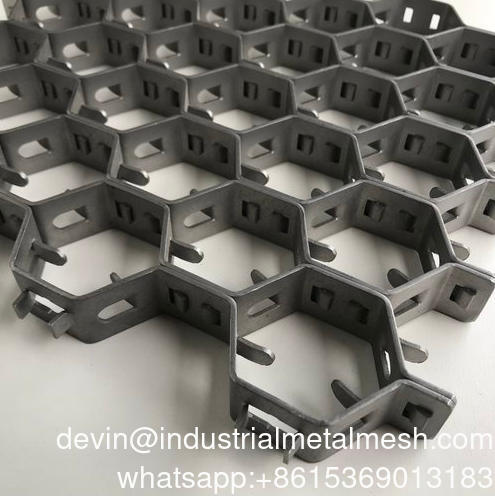 Aplikacje sieci sześciokątnej to oprawa przeciw zużyciu w ścianach i naczyniach cyklonów lub może być stosowana jako pokrycie ścienne w piecach przemysłowych.