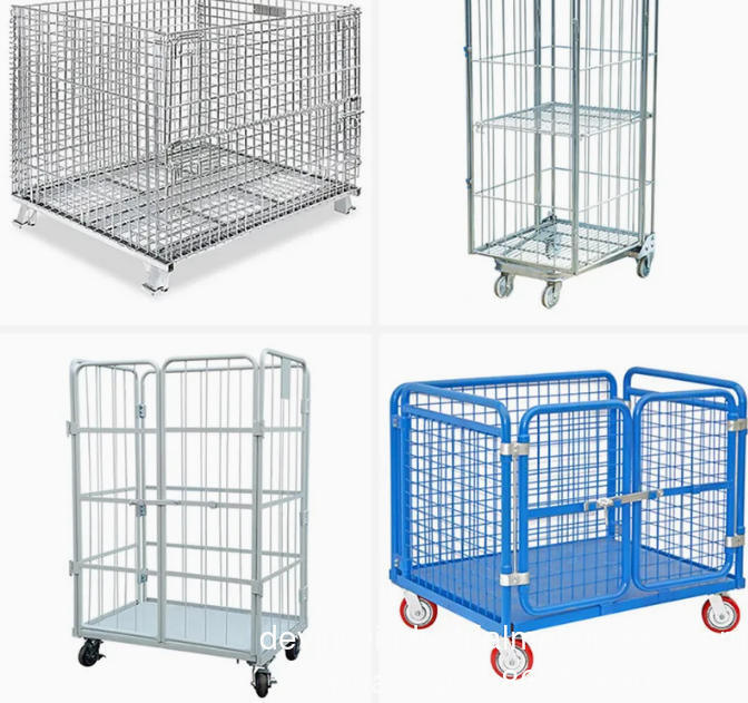 The storage cage is welded with strong steel wire, and the bottom is welded in a U-shape to make the structure more sturdy. Install cardboard protective materials inside the storage cage to store materials that are prone to scratching the surface. With the help of handling equipment, it can be used in logistics processes such as transportation, loading and unloading, and storage.